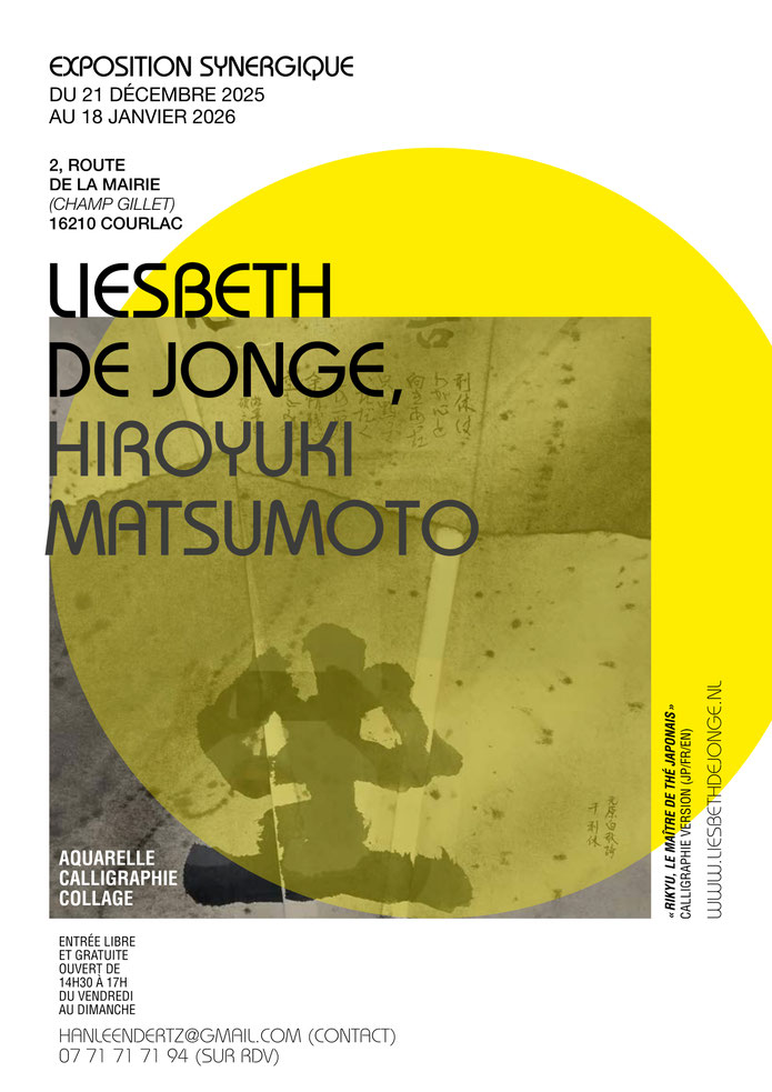 Liesbeths echtgenoot, Han, organiseerde een tentoonstelling van Liesbeths en Hiroyuki's werk, "Watercolor and Calligraphy Collage", bij hem thuis, van 21 december 2025 tot 18 januari 2026.